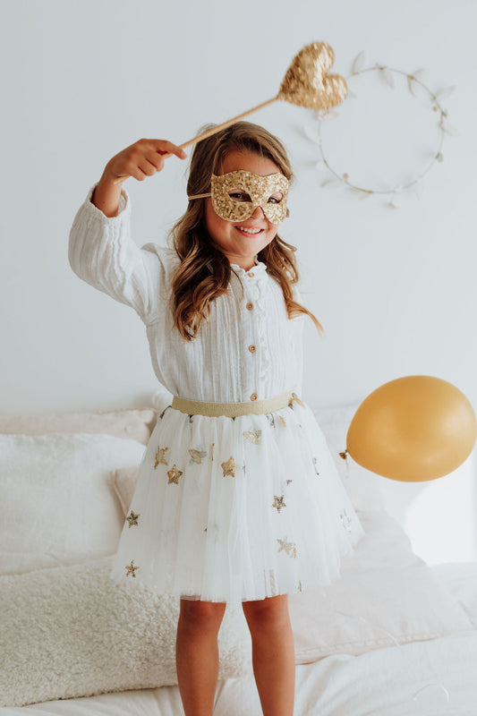Déguisements : baguettes magiques, masques, capes et couronnes.