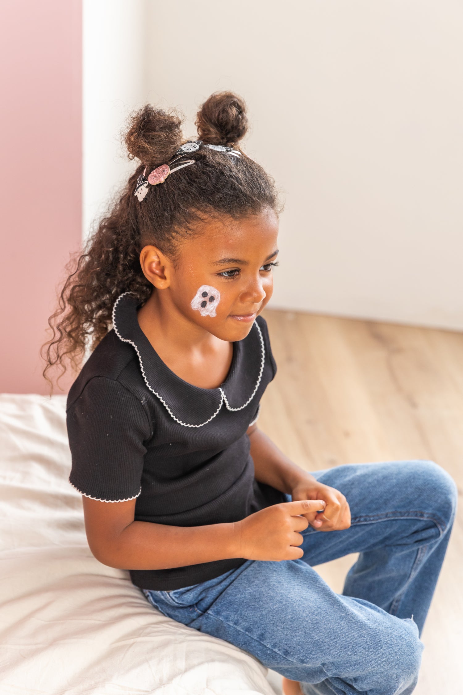 Un Halloween tout doux avec ces citrouilles glitter à croquer ! Un duo de barrettes adorablement spooky pour briller sans faire peur.
