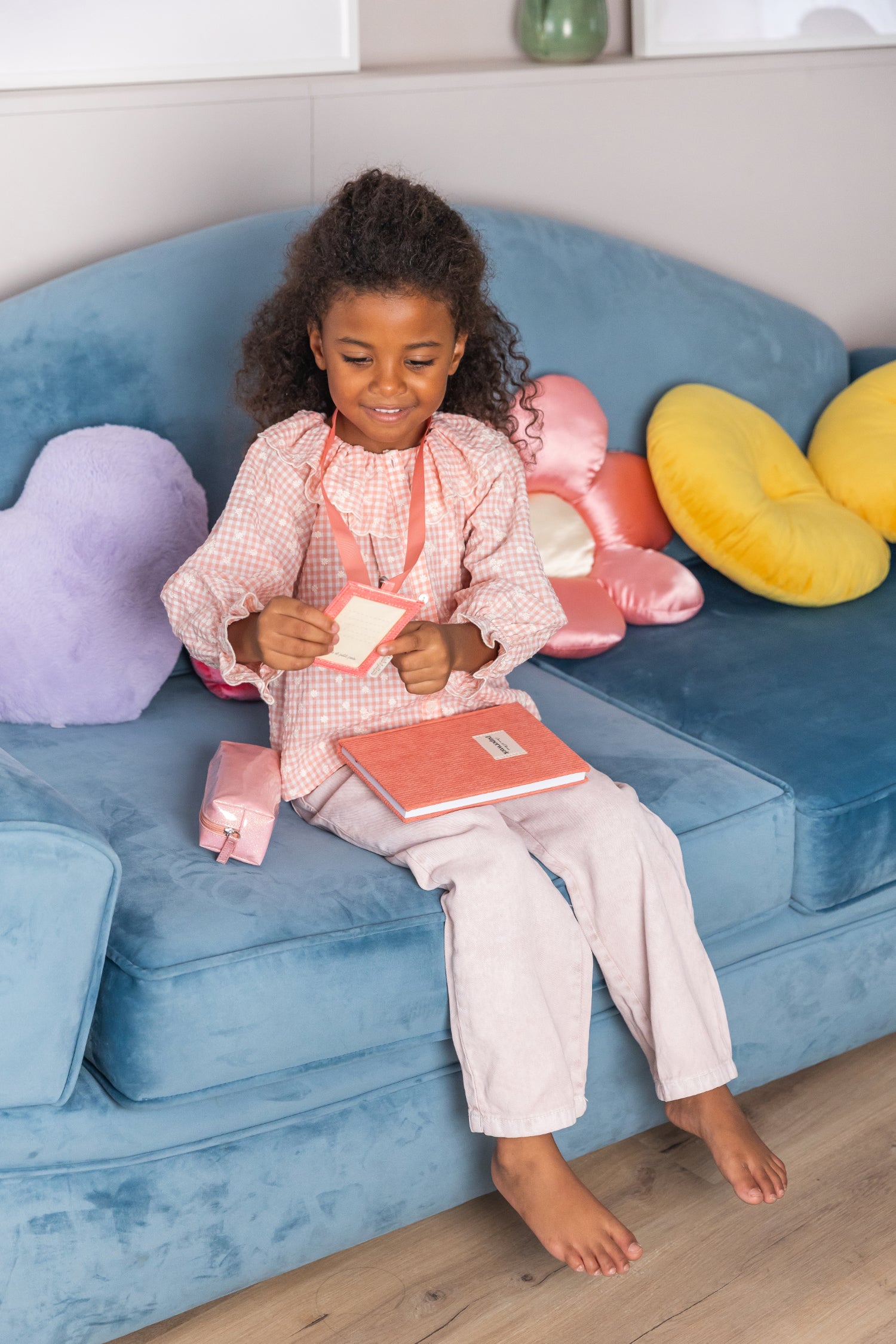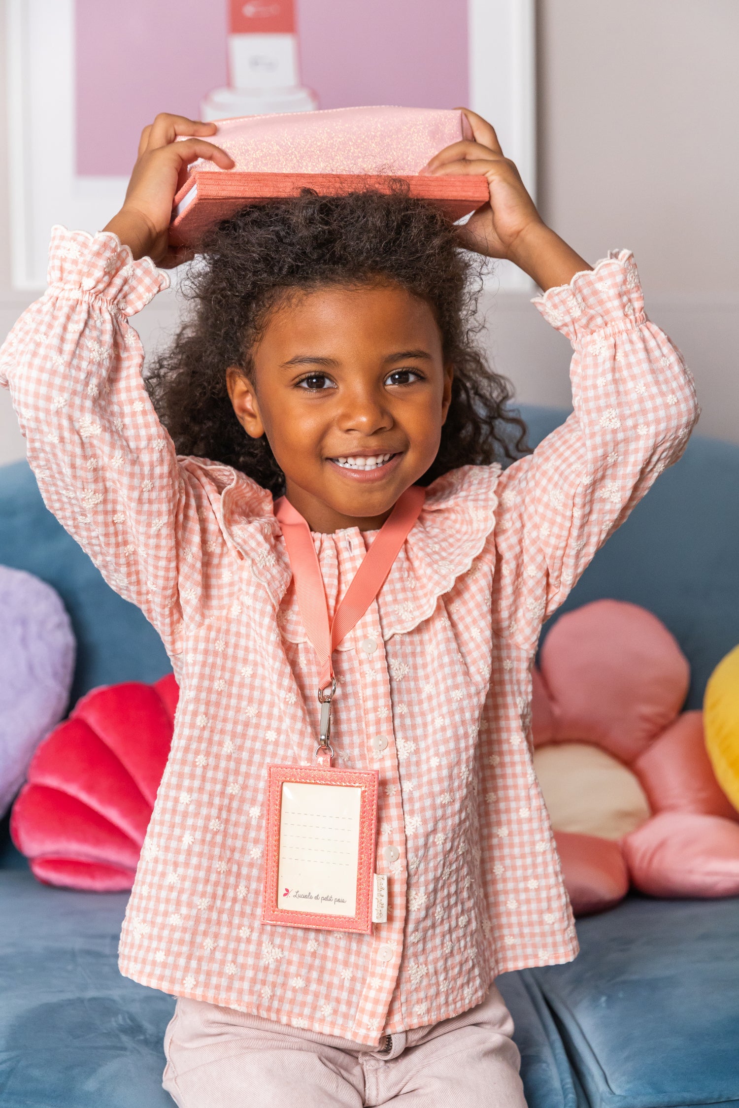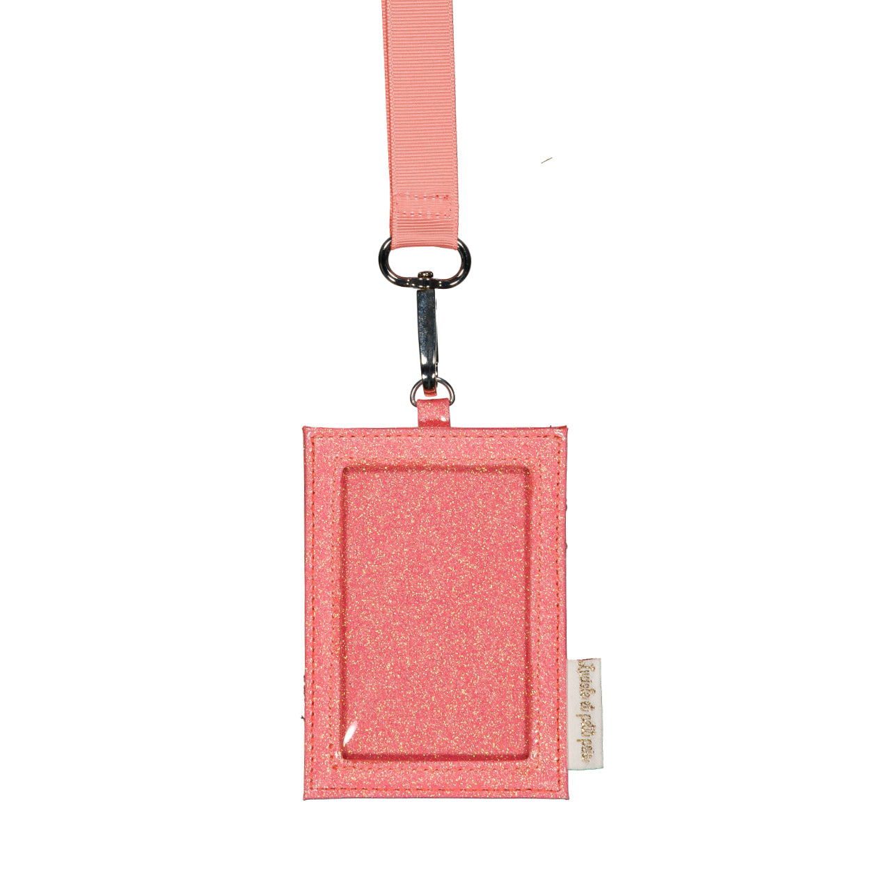 Pratique et ultra pétillant, ce porte-carte en tissu enduit pailleté corail est idéal pour garder les cartes de cantine, de transport ou d’activités toujours à portée de main. Son cordon en gros grain corail tout doux le rend agréable à porter au quotidien.